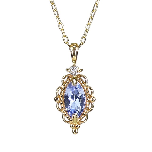 K18タンザナイト/ダイヤモンド0.01ctアンティーク風ペンダント PNI-80YGNWTA