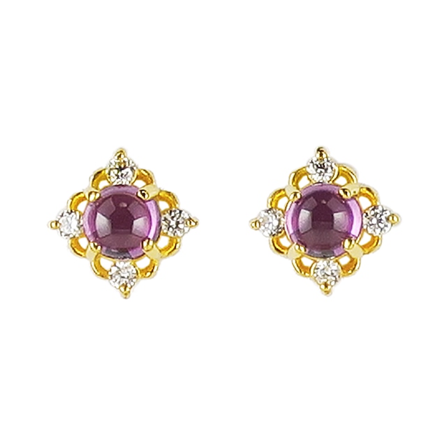 K18ロードライトガーネット/ライトアメジスト/ダイヤモンド0.03ctx2(Total0.06ct)アンティーク風ピアス PNI-148YGNWRG