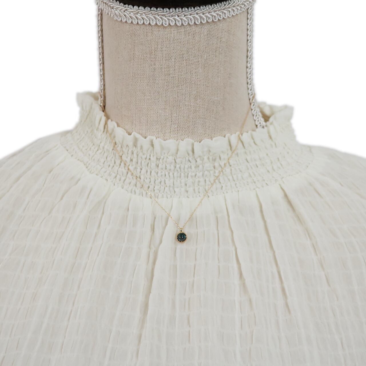 深い色合いのロンドンブルートパーズをミルグレーンで取り巻いたかわいいペンダントです。