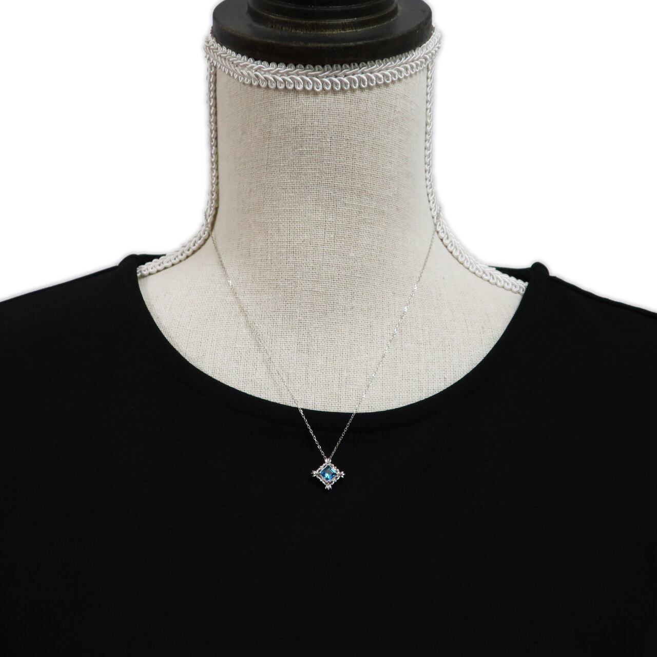 センターストーンの大きさは5mm(1辺)あり、存在感のあるペンダントです。