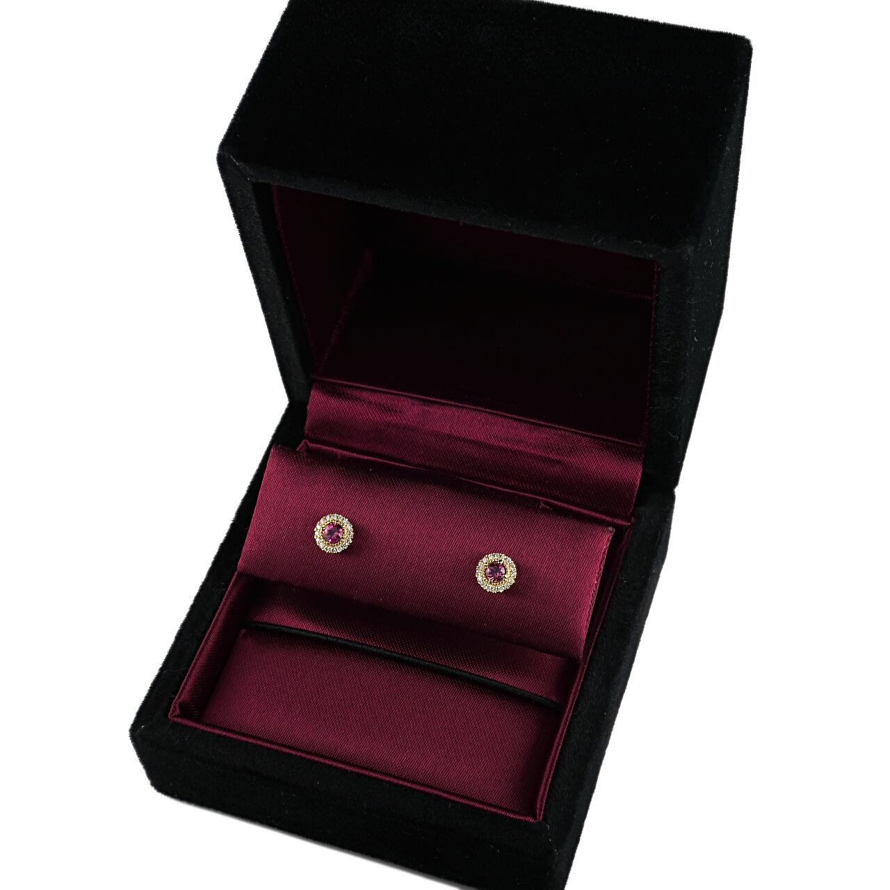 鮮やかな色合いのピンクトルマリンをミルグレーンとダイヤモンドで取り巻いたきれいなピアスです。