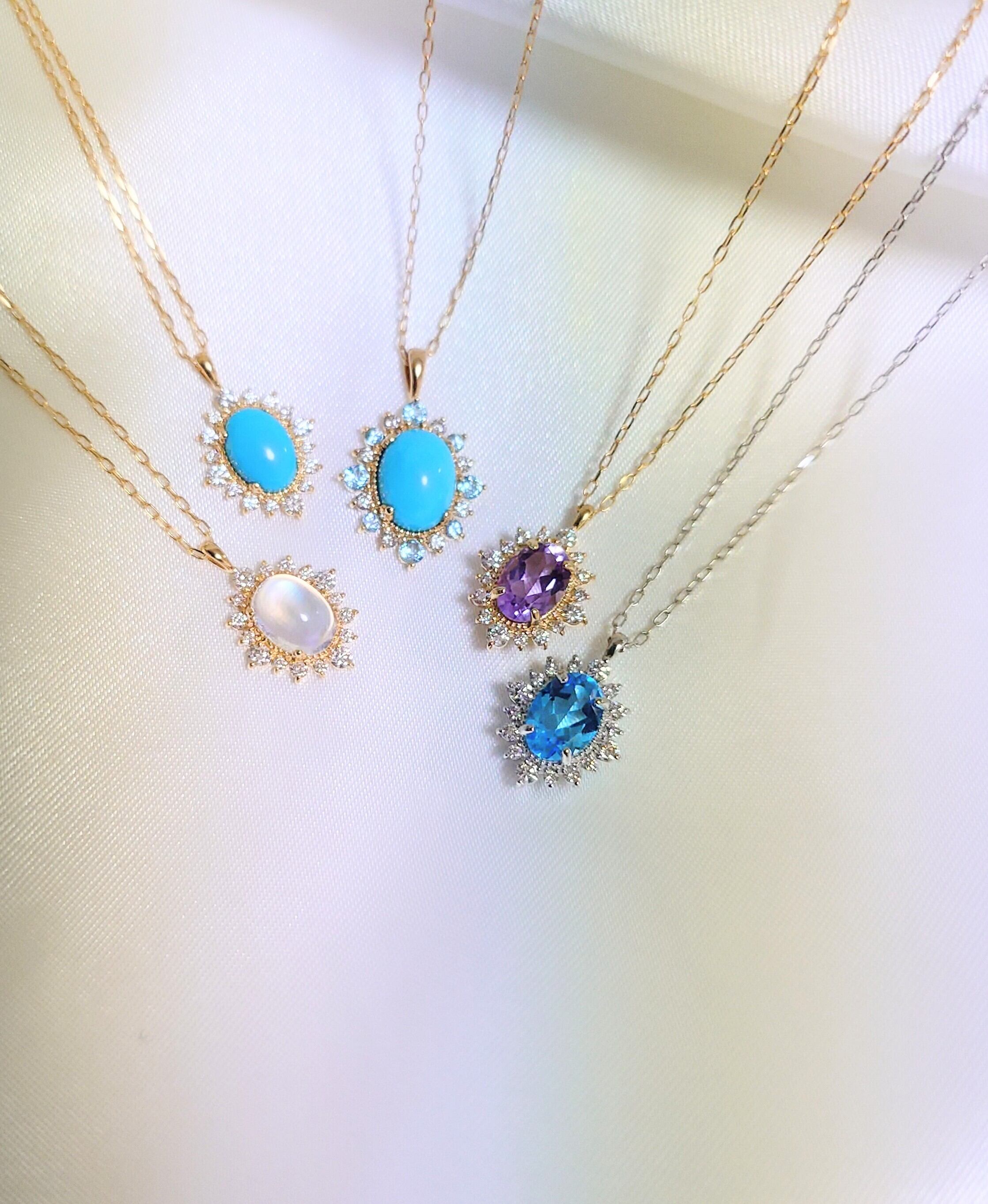 [hinaryhimary] K18ターコイズ(トルコ石)/ダイヤモンド0.15ctペンダント PNI-318YGNWTQ