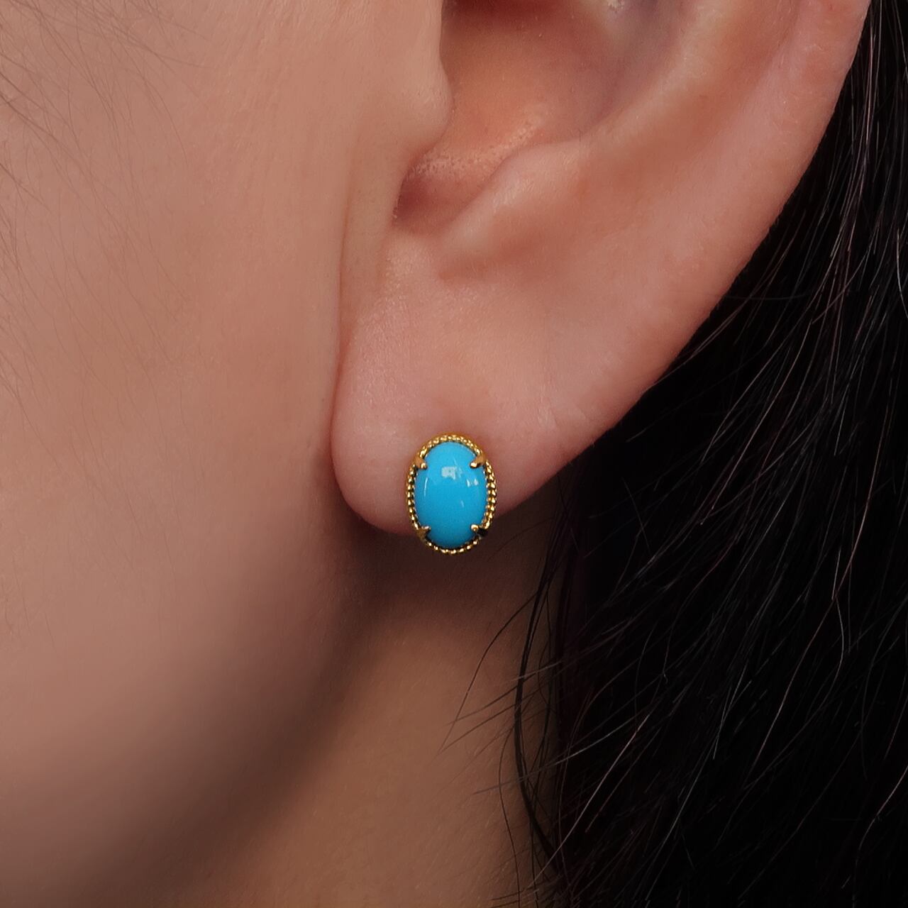 ミルグレーンを施したシンプルな枠にターコイズ(トルコ石)を留めたピアスです。