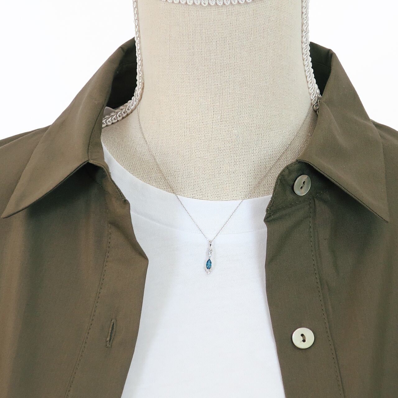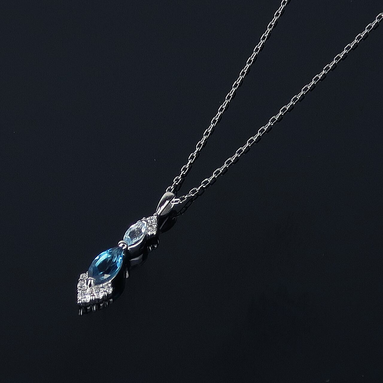 深い青色のロンドンブルートパーズと淡い色のブルートパーズを配したペンダントです。