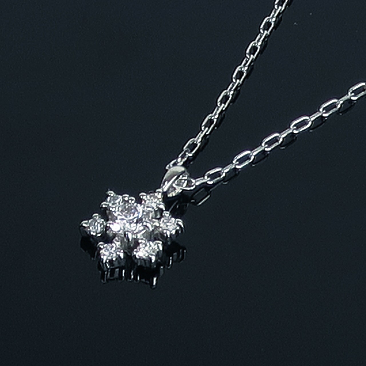 プラチナ ダイヤモンドペンダント。雪の結晶のようなかわいいデザイン。