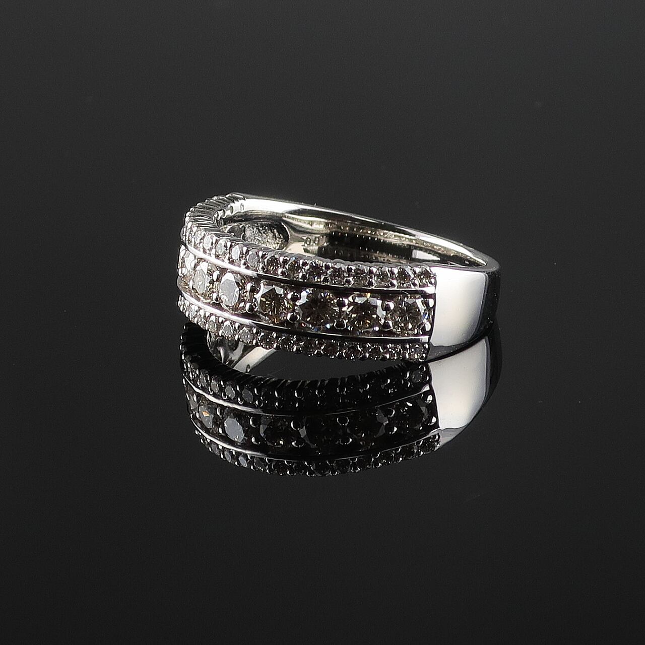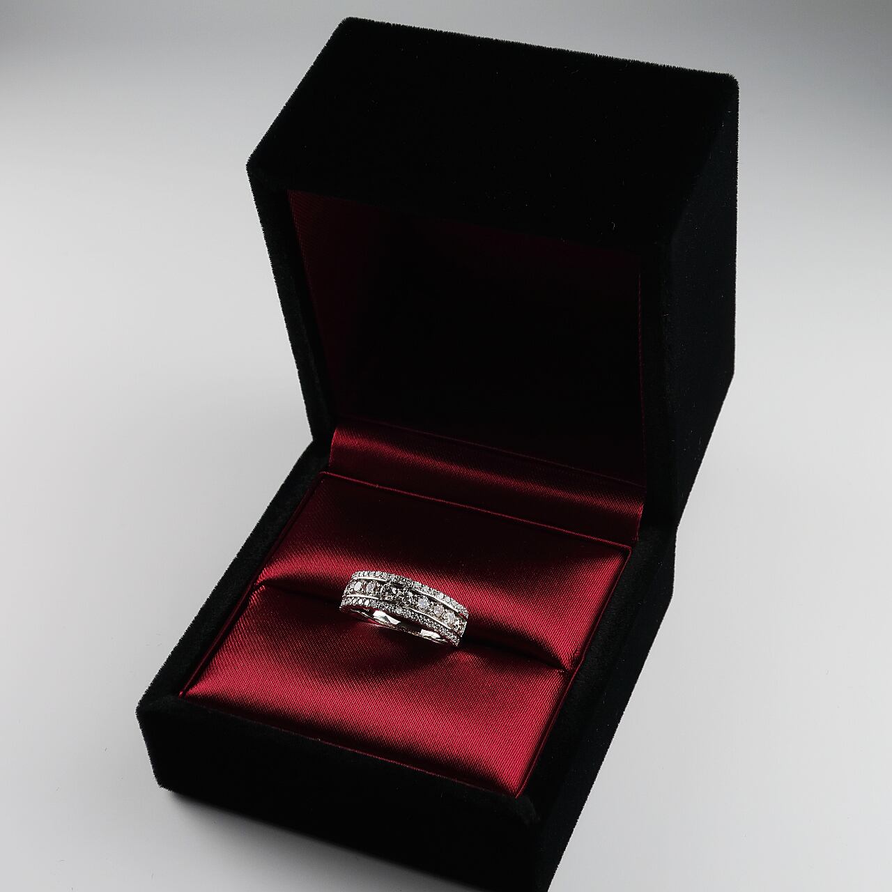 幅広、一文字タイプの定番リング。真ん中のダイヤの上下に地金のラインを入れて、高級感と落ち着きのあるデザインに仕上げました。