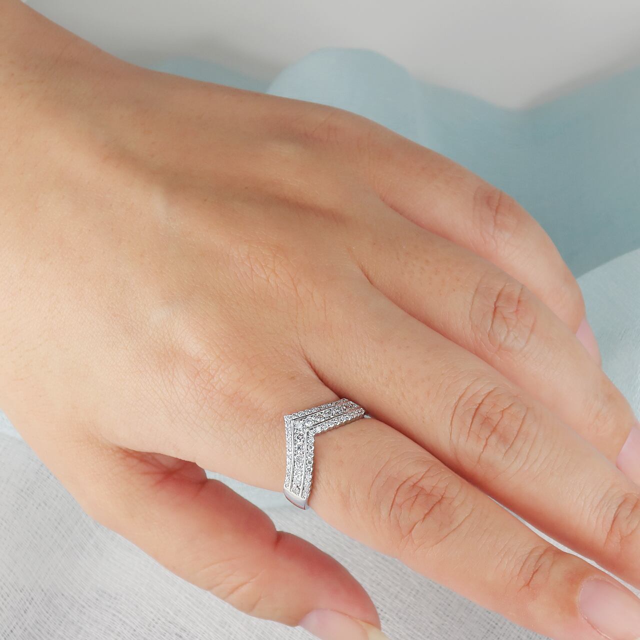 プラチナ ダイヤモンドV字リング。ダイヤモンドパヴェの中に地金のラインがシャープさを演出してくれています。
