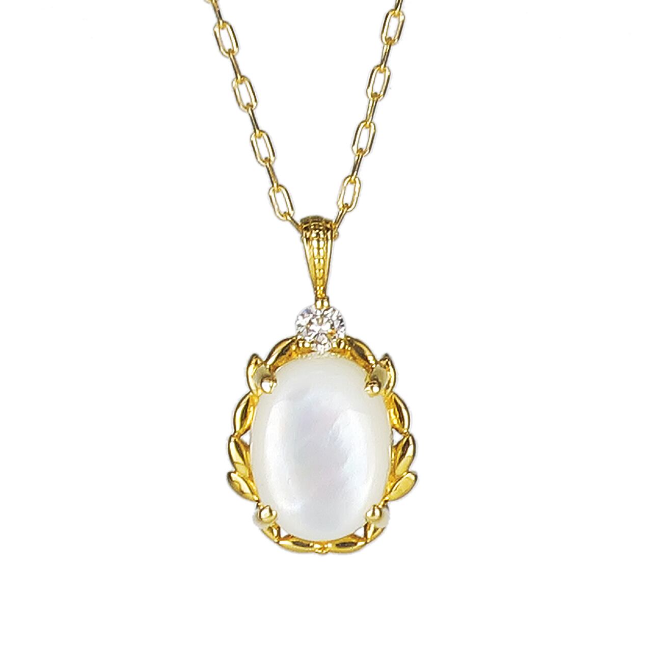 K18シェル(白蝶貝)/ダイヤモンド0.03ctペンダントリーフペンダント PNI-33YGNWSHELL