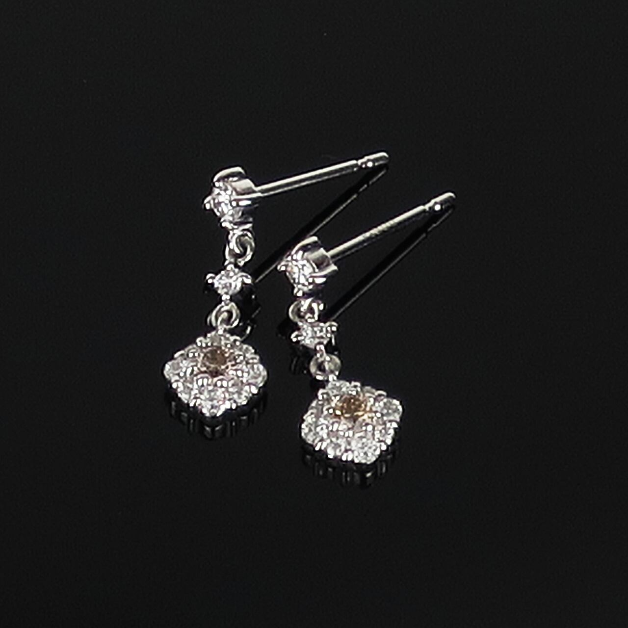 センターにブラウンダイヤを留め、キレイなダイヤで取り巻いたデザインのピアスです。