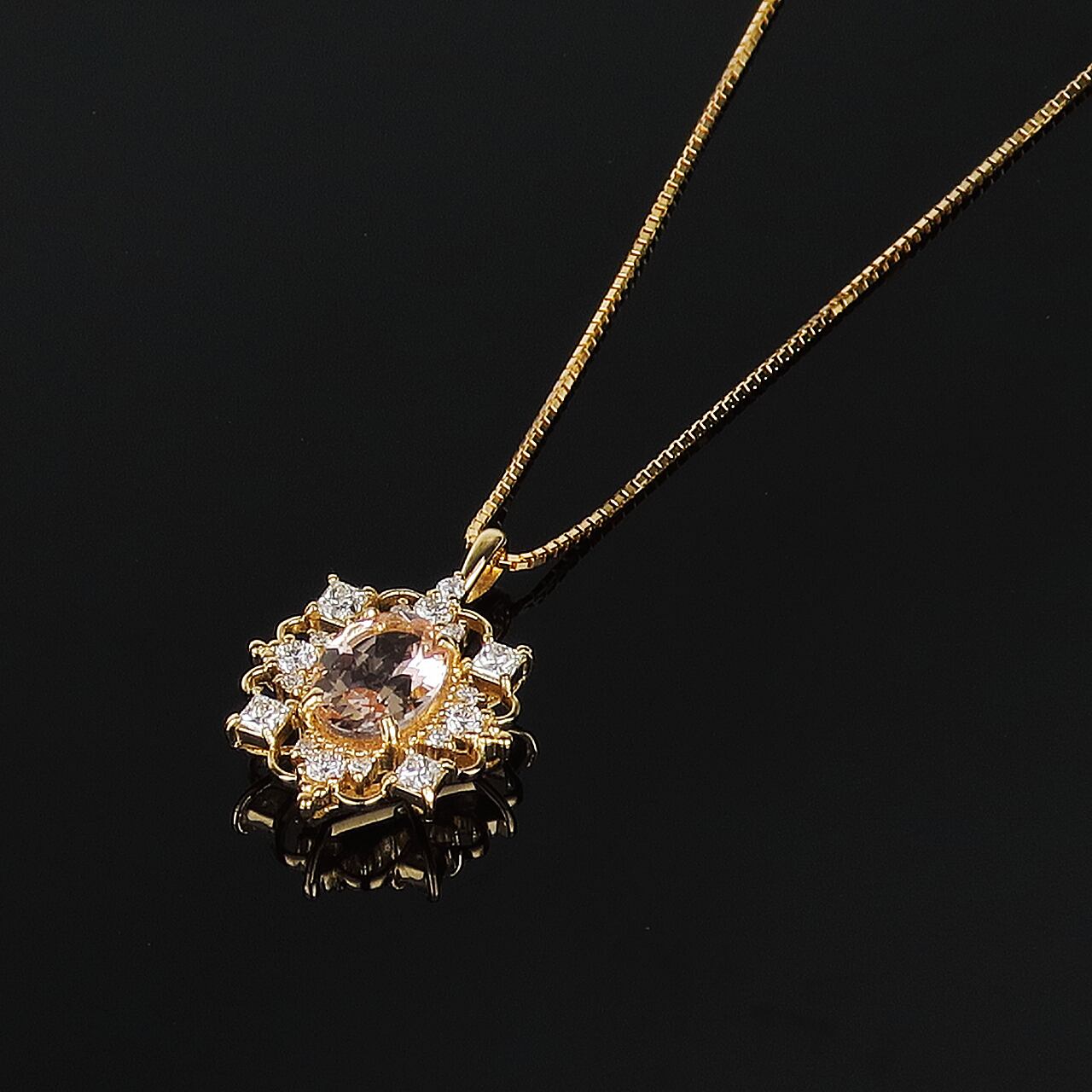 K18モルガナイト/ダイヤモンド0.35ct アンティーク風ペンダント PNI-106YGNWMN