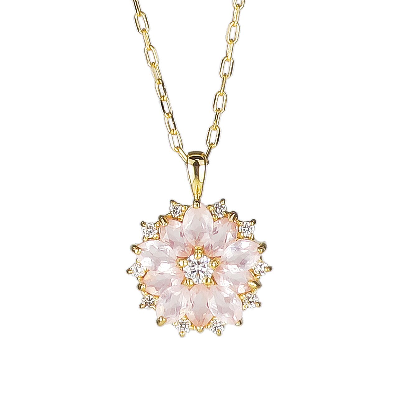 K18ローズクオーツ/ダイヤモンド0.07ctフラワーデザインペンダント(小型版) PNI-161YGNWRQ