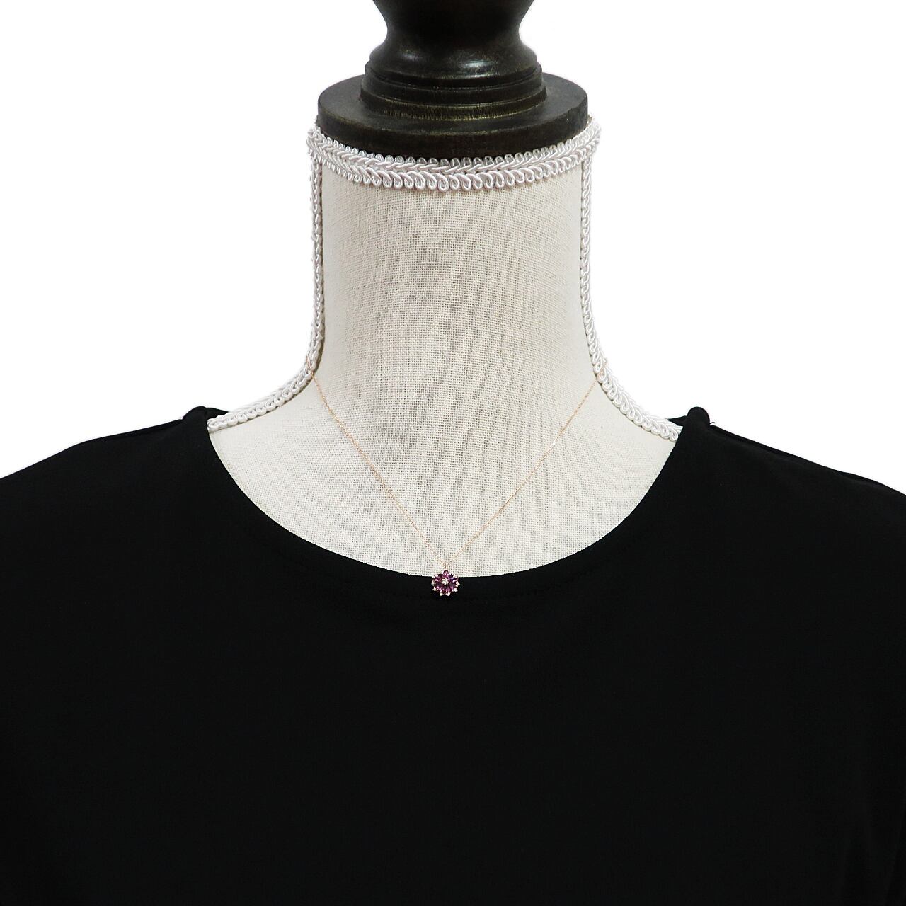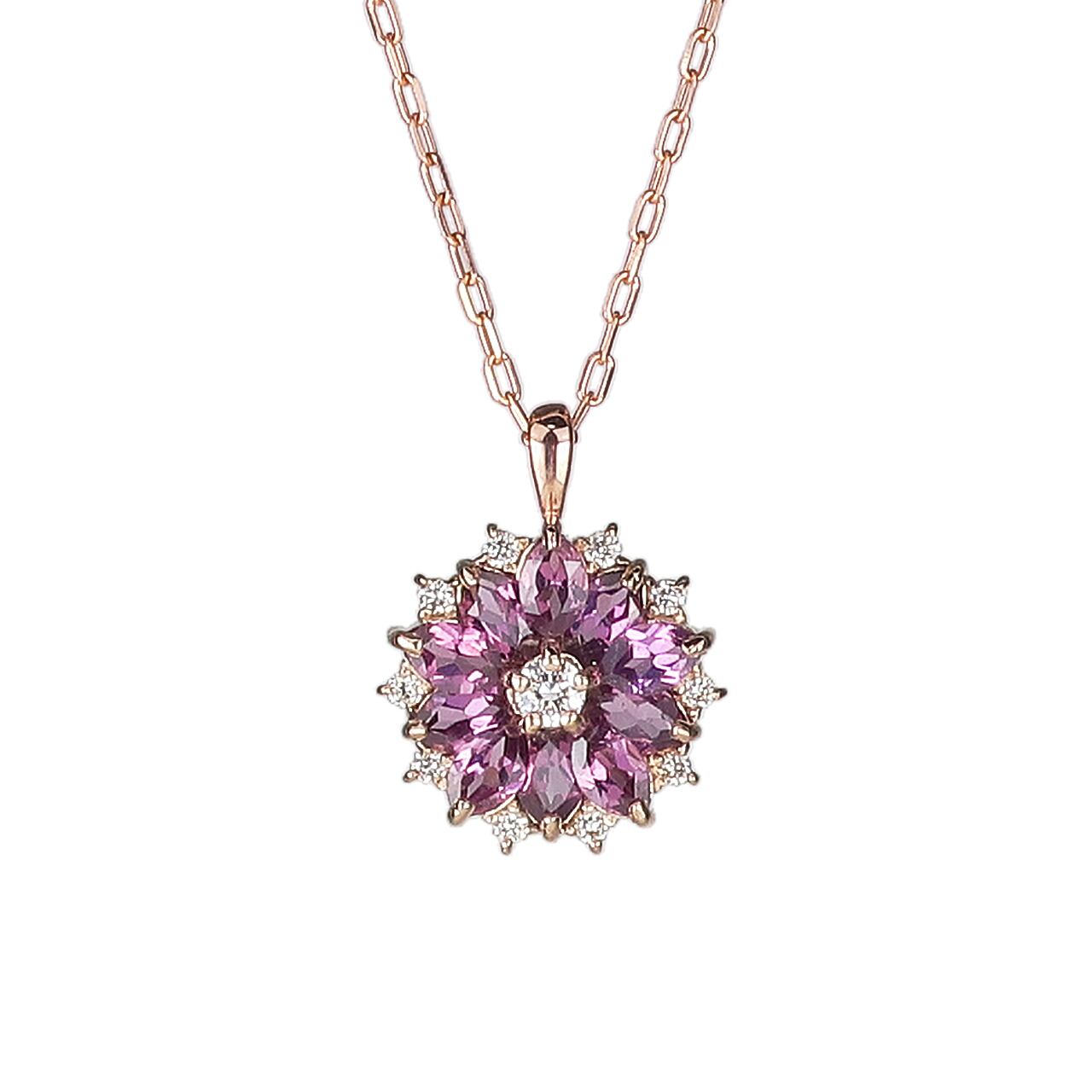 K18ピンクゴールド ロードライトガーネット/ダイヤモンド0.07ct フラワーデザインペンダント(小型版) PNI-161PGNWRG
