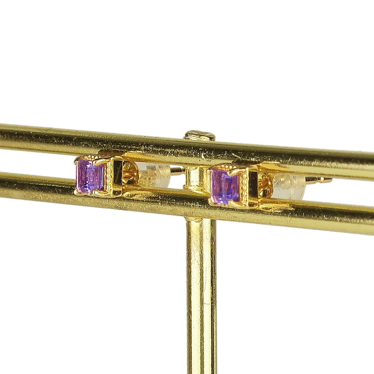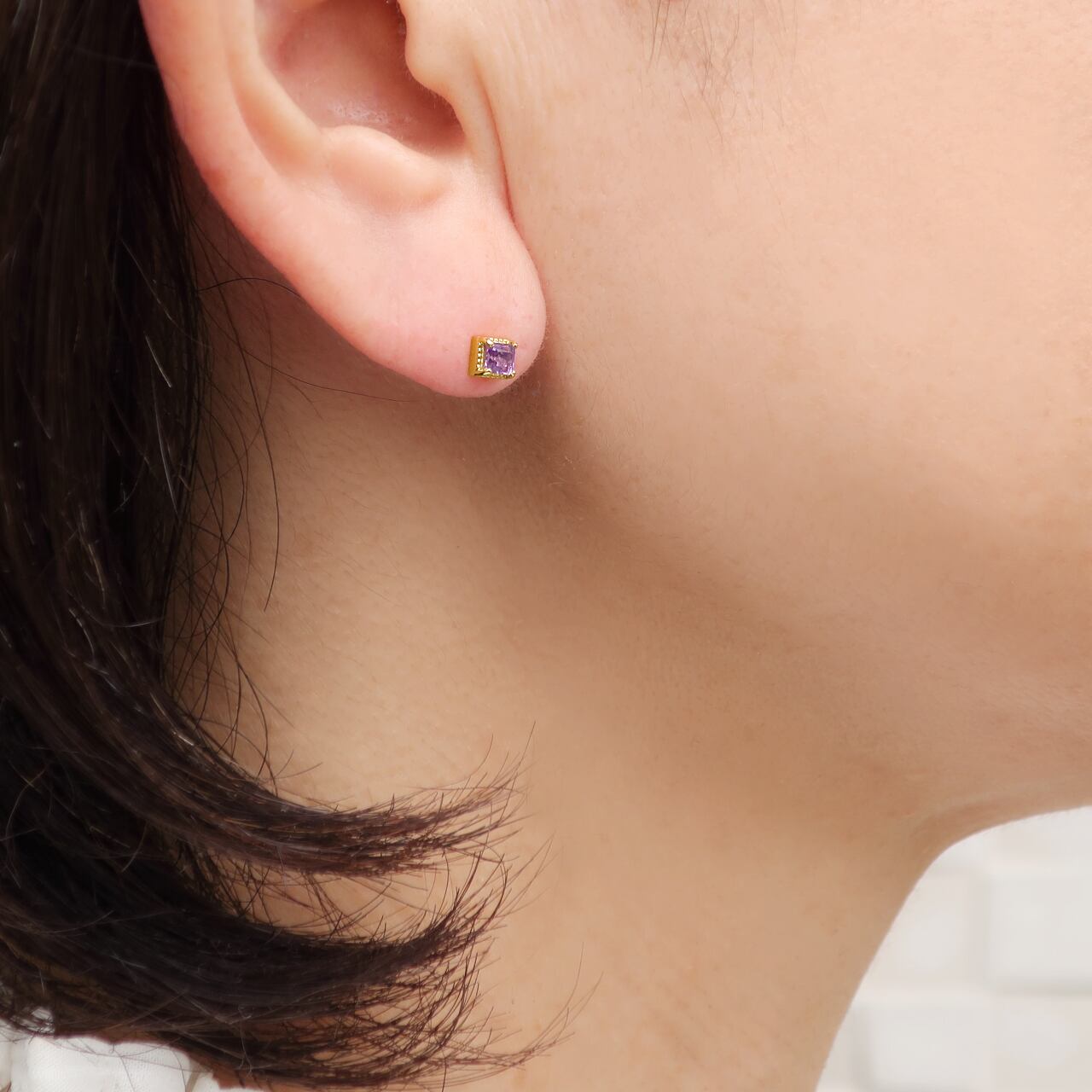 スクエアーカットのアメジストをミルグレーンの付いたアンティーク風の枠に留めたピアスです。