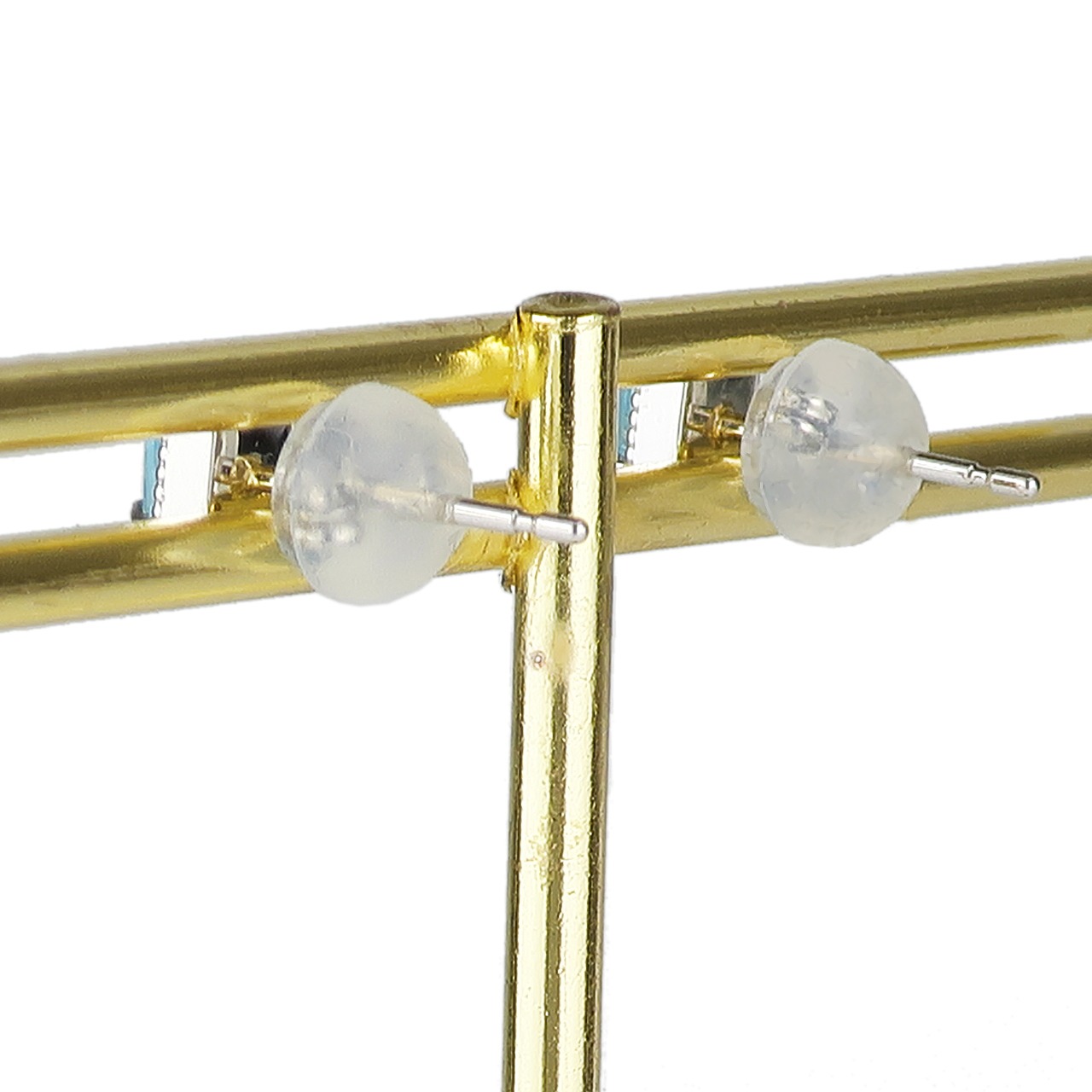 スクエアーカットのブルートパーズをミルグレーンの付いたアンティーク風の枠に留めたピアスです。