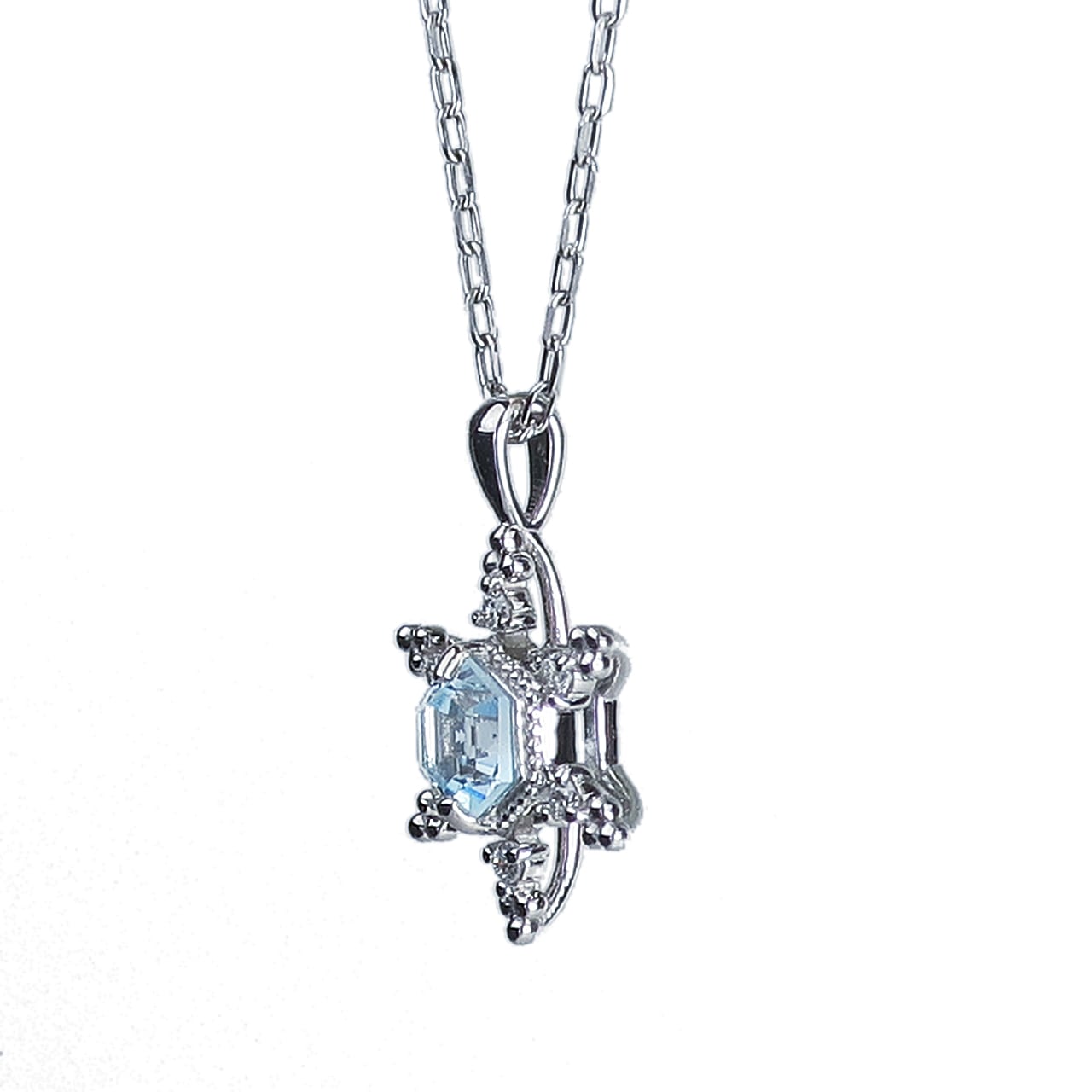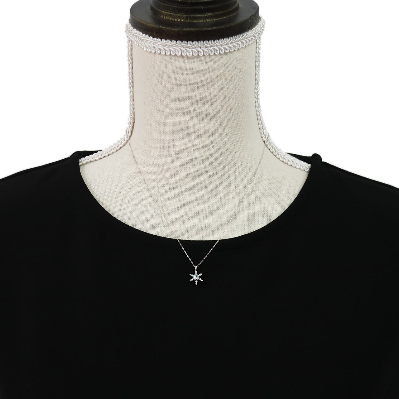 六角形(ヘキサゴン)のブルートパーズを雪の結晶にアレンジしたペンダントです。