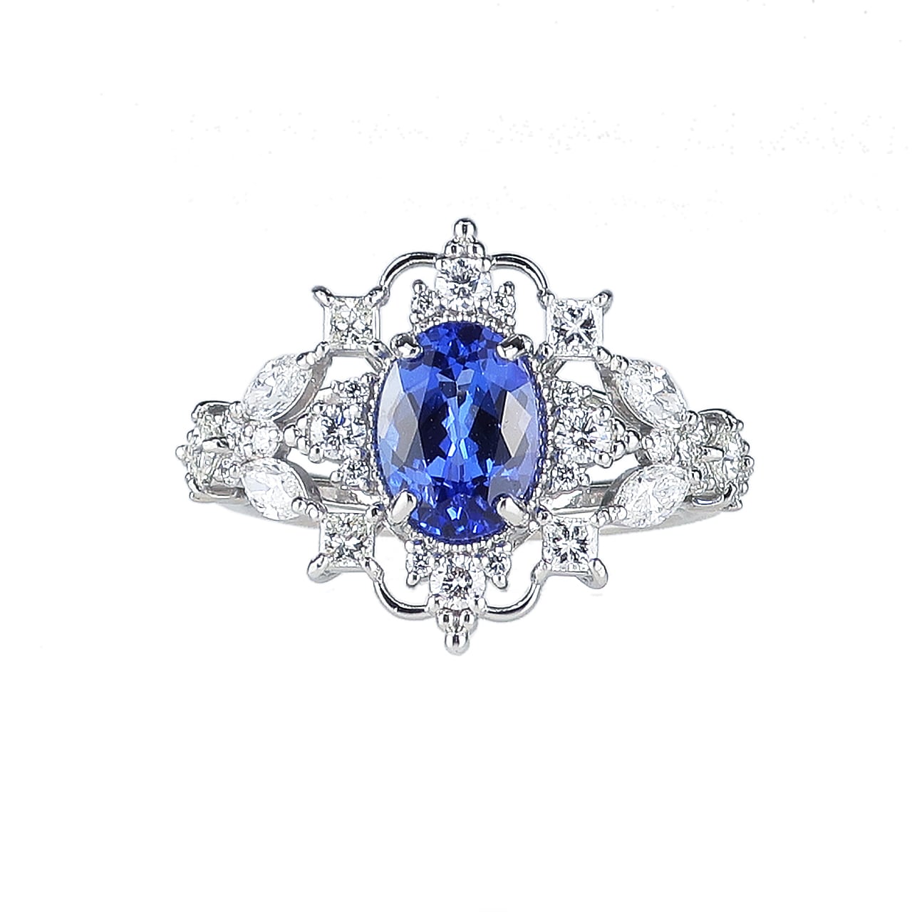 プラチナ タンザナイト/ダイヤモンド0.80ctアンティーク風リング RI-55PTNWTA(サイズ#8~#16)