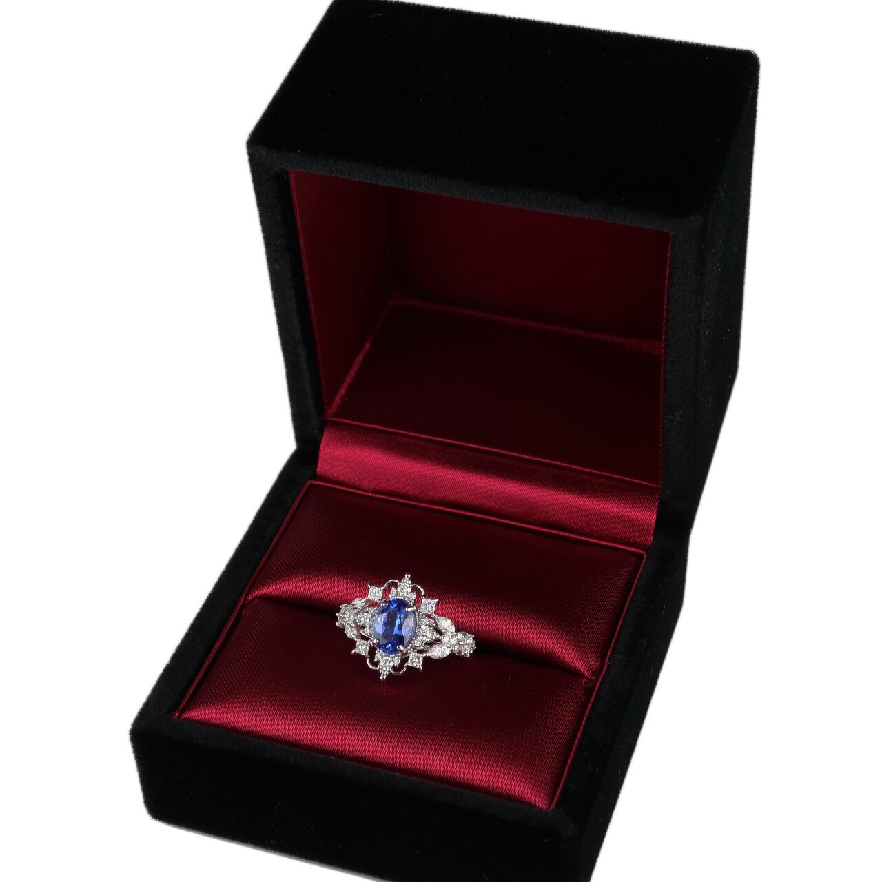 深い色合いのタンザナイトをアンティーク風の枠に留めたリングです。