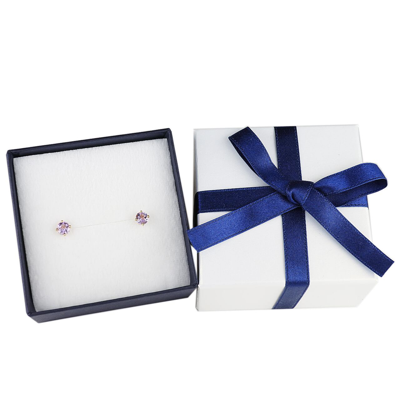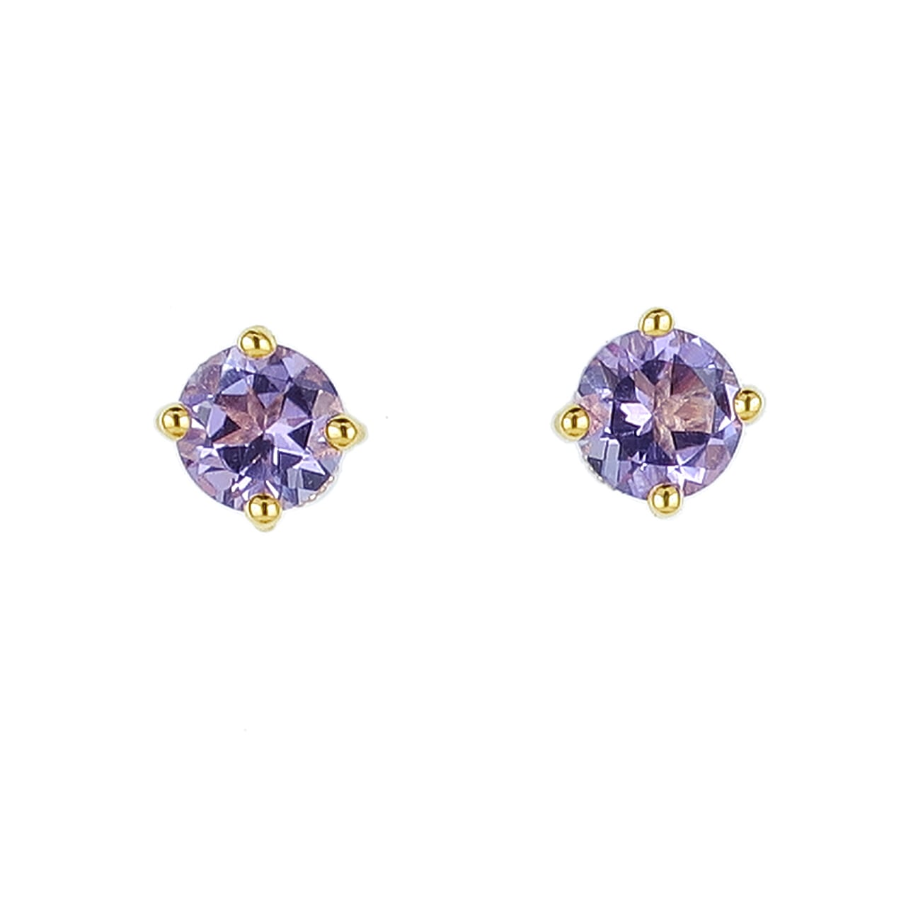 5mmラウンドカットのライトアメジスト(薄い色のアメジスト)をかわいいアンティーク風の枠に留めたピアスです。