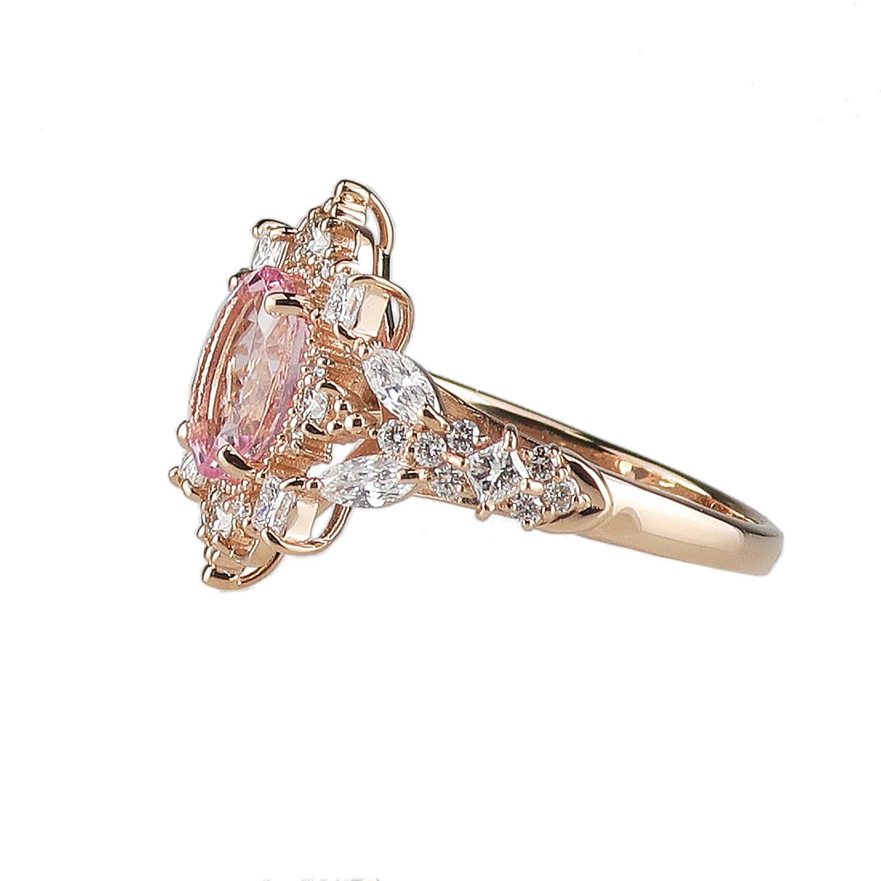 K18ピンクゴールド モルガナイト/ダイヤモンド0.8ct アンティーク風リング サイズ#8~#16 RI-55PGNWMN