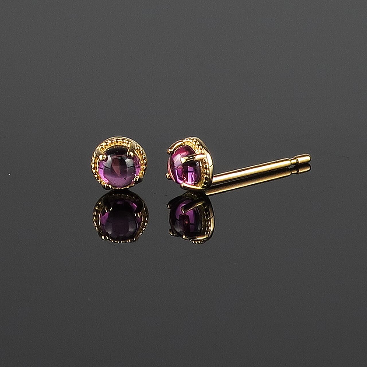 丸くてかわいいカボションカットのロードライトガーネットのピアスです。