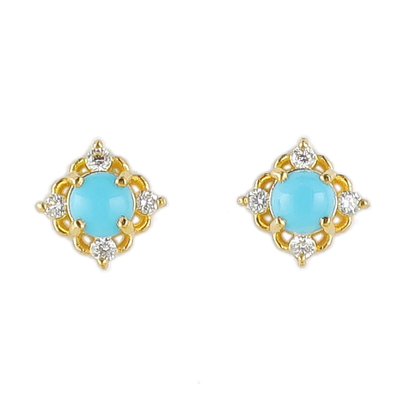 ターコイズ(トルコ石)のカボションカットを留めたピアスです。