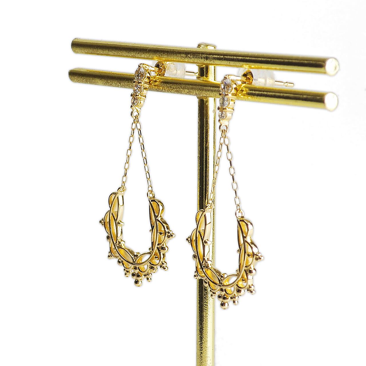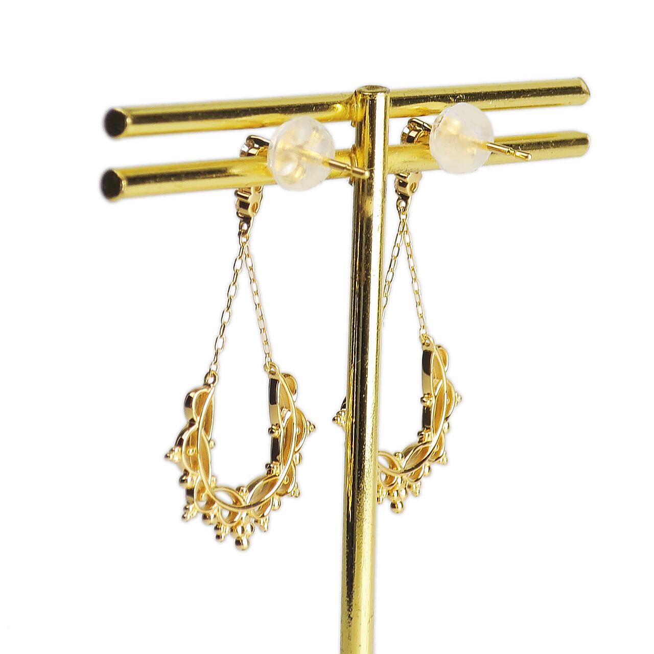 少し大きめの透かしパーツが揺れるデザインで、存在感もありかわいいです。