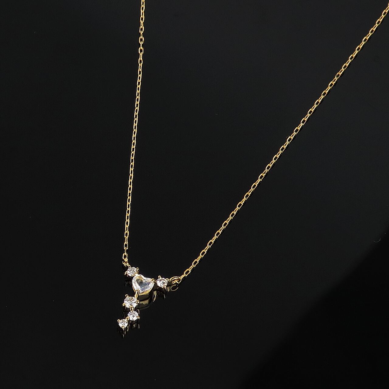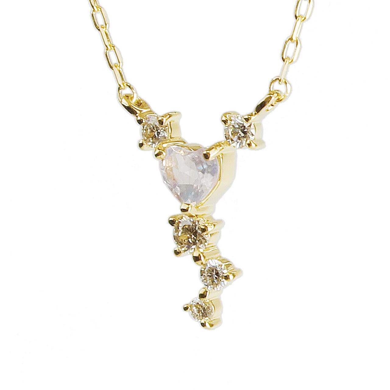 小さなハートシェイプのブルームーンストーンを、夜空の星座に見立ててデザインしたペンダントです。
