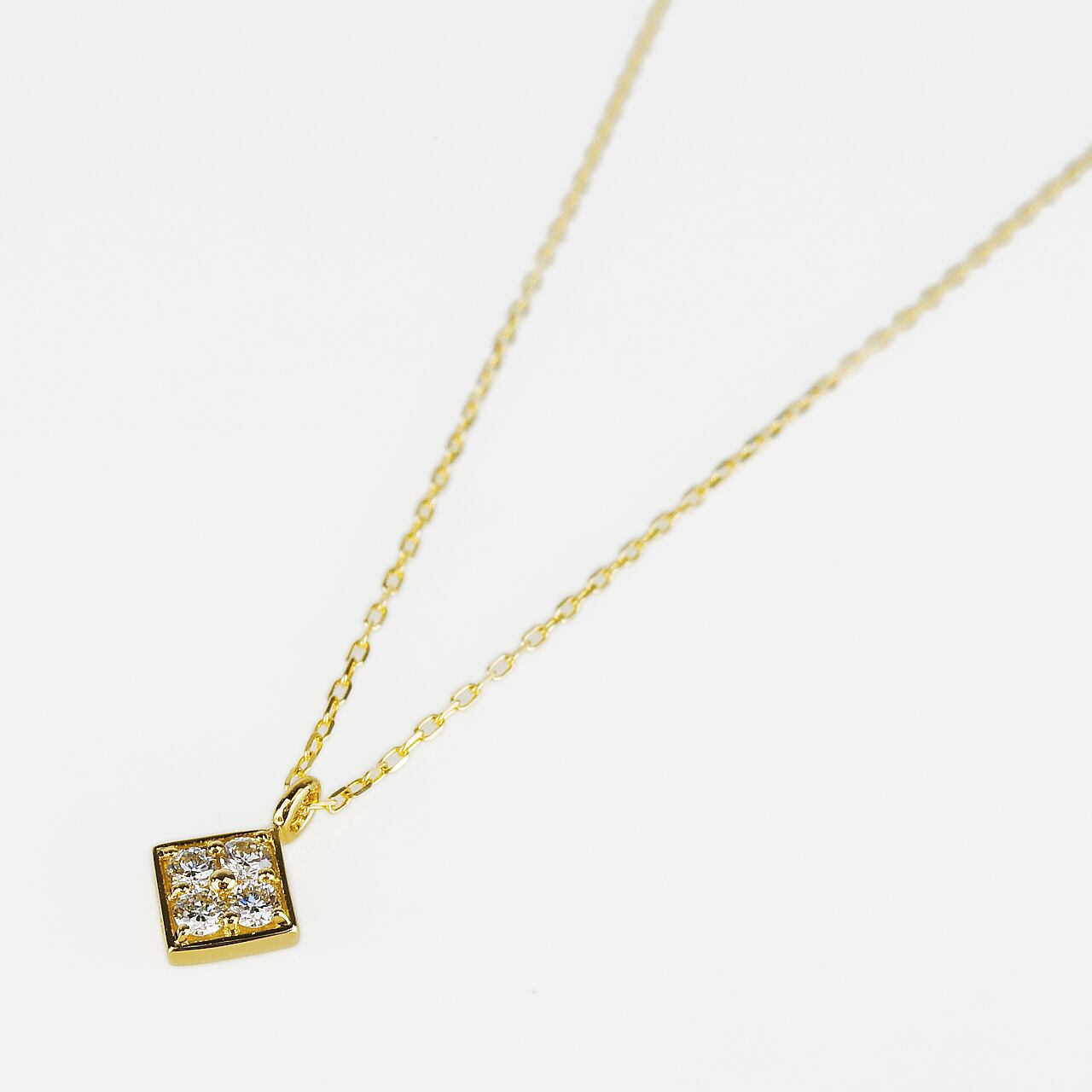 シックなスクエアーのデザインに、きれいなダイヤモンドが輝くK18ペンダント。