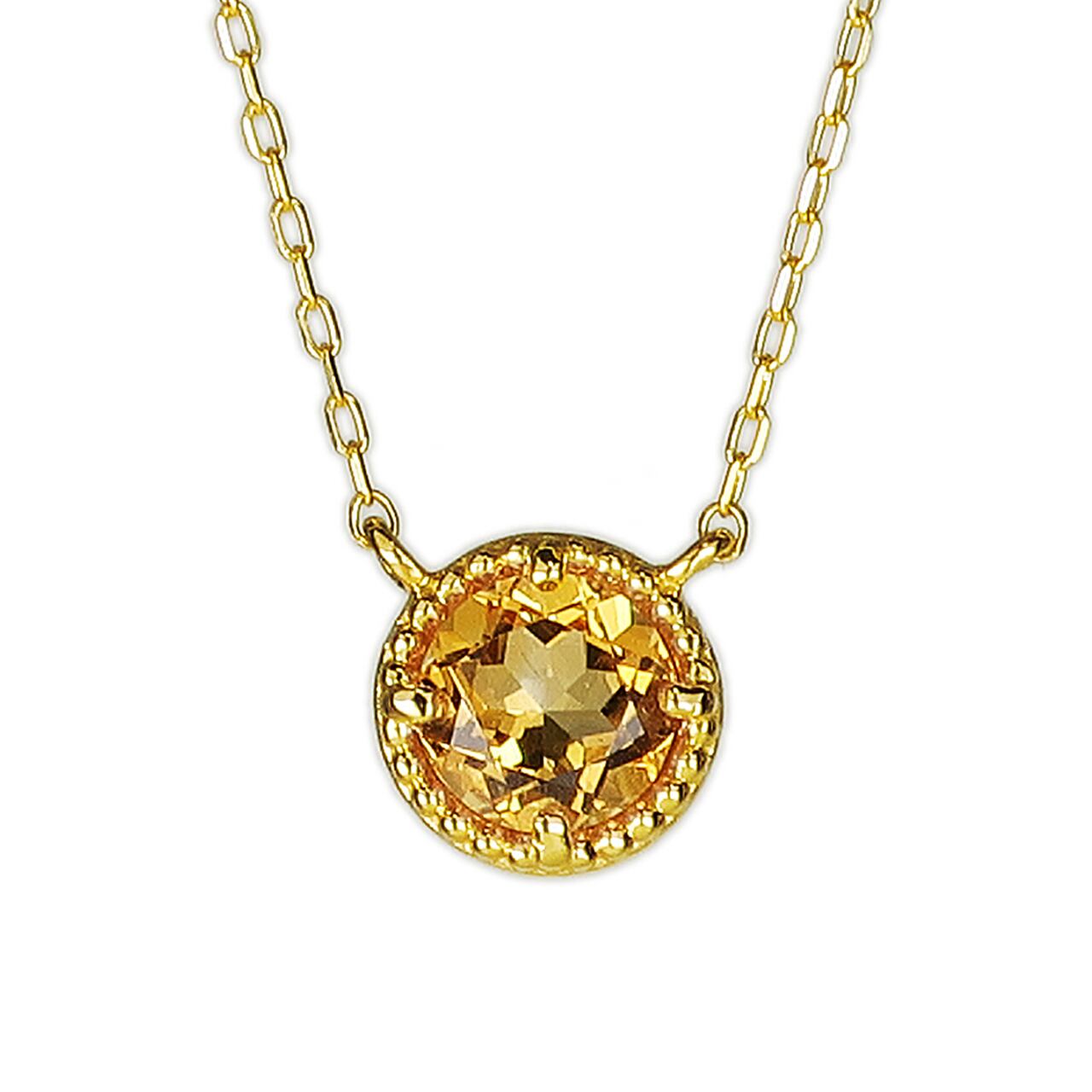 シトリントパーズを、ミルグレーンを施したアンティーク風の枠に留めた,かわいいペンダントです。