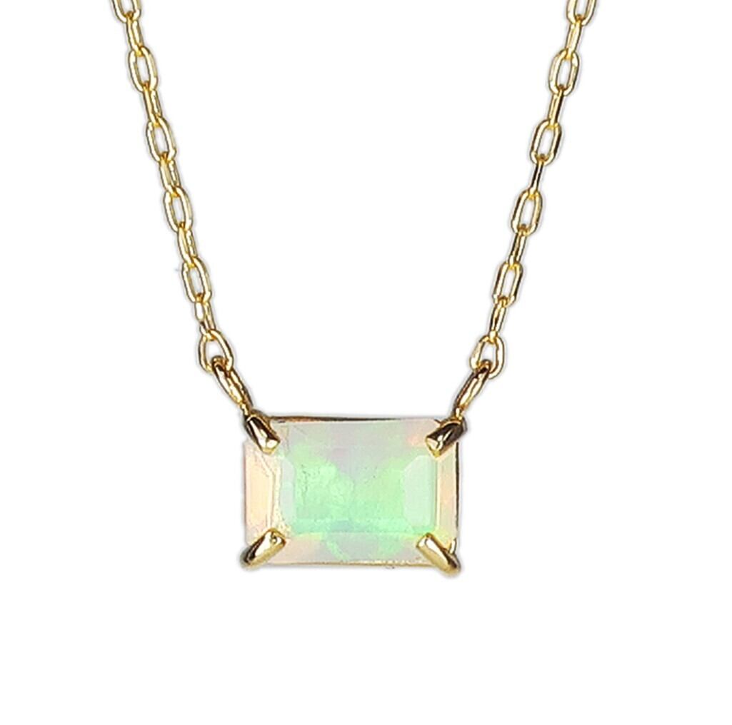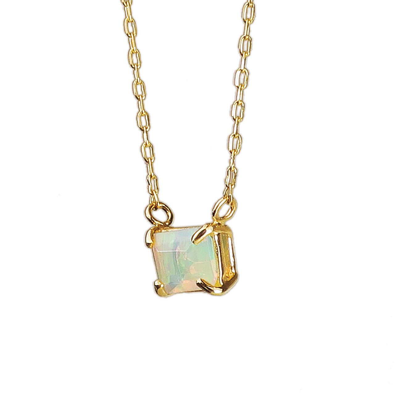 四角いカットのエチオピアオパールをシンプルな枠に留めたペンダントです。