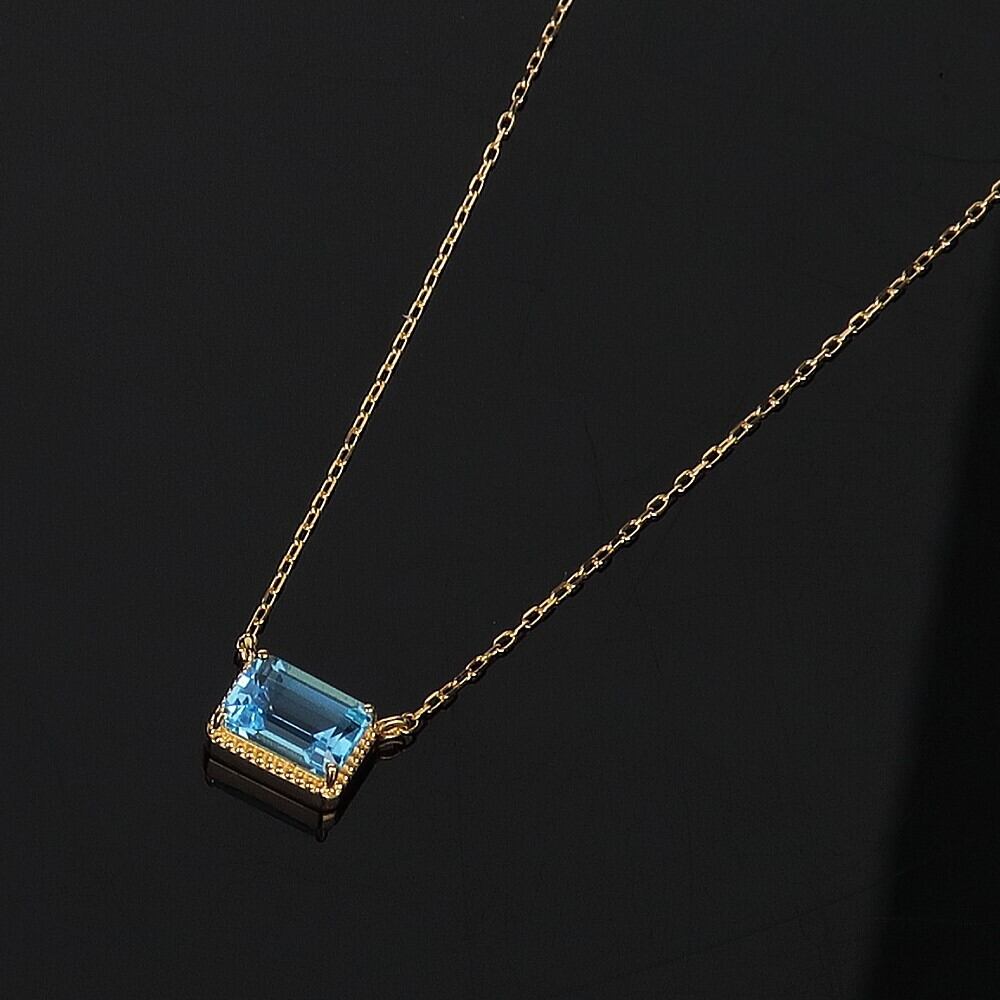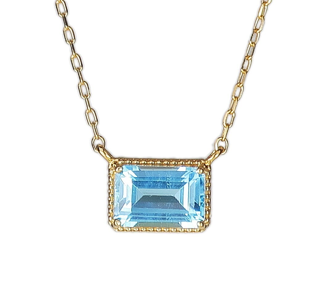 透明感のあるブルートパーズを、ミルグレーンを施したアンティーク風デザインに留めたペンダントです。