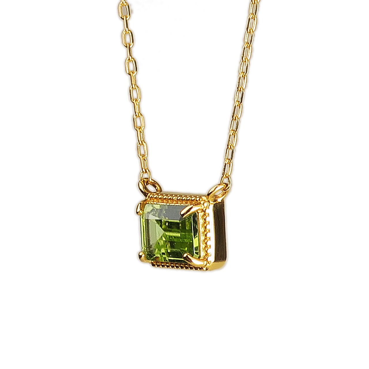 8月の誕生石、ペリドットをミルグレーンを施したアンティーク風デザインに留めたペンダントです。