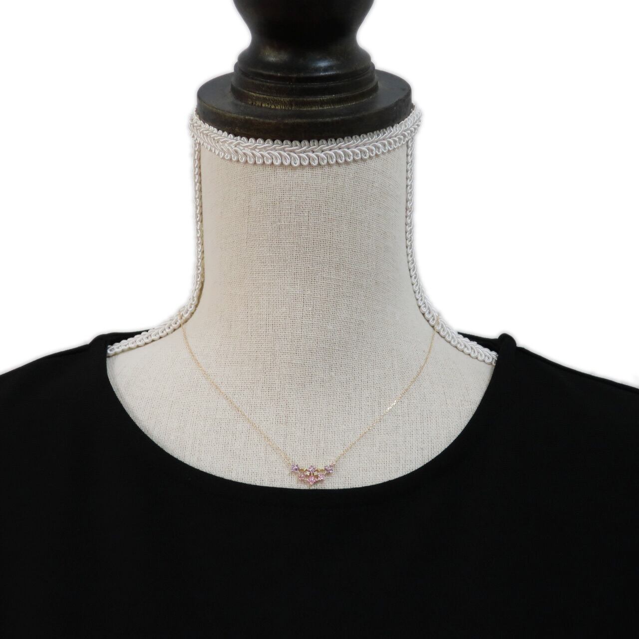 使用している宝石はピンクサファイヤ、ピンクトルマリン、ライトアメジスト、イエローサファイヤ、ダイヤモンド。