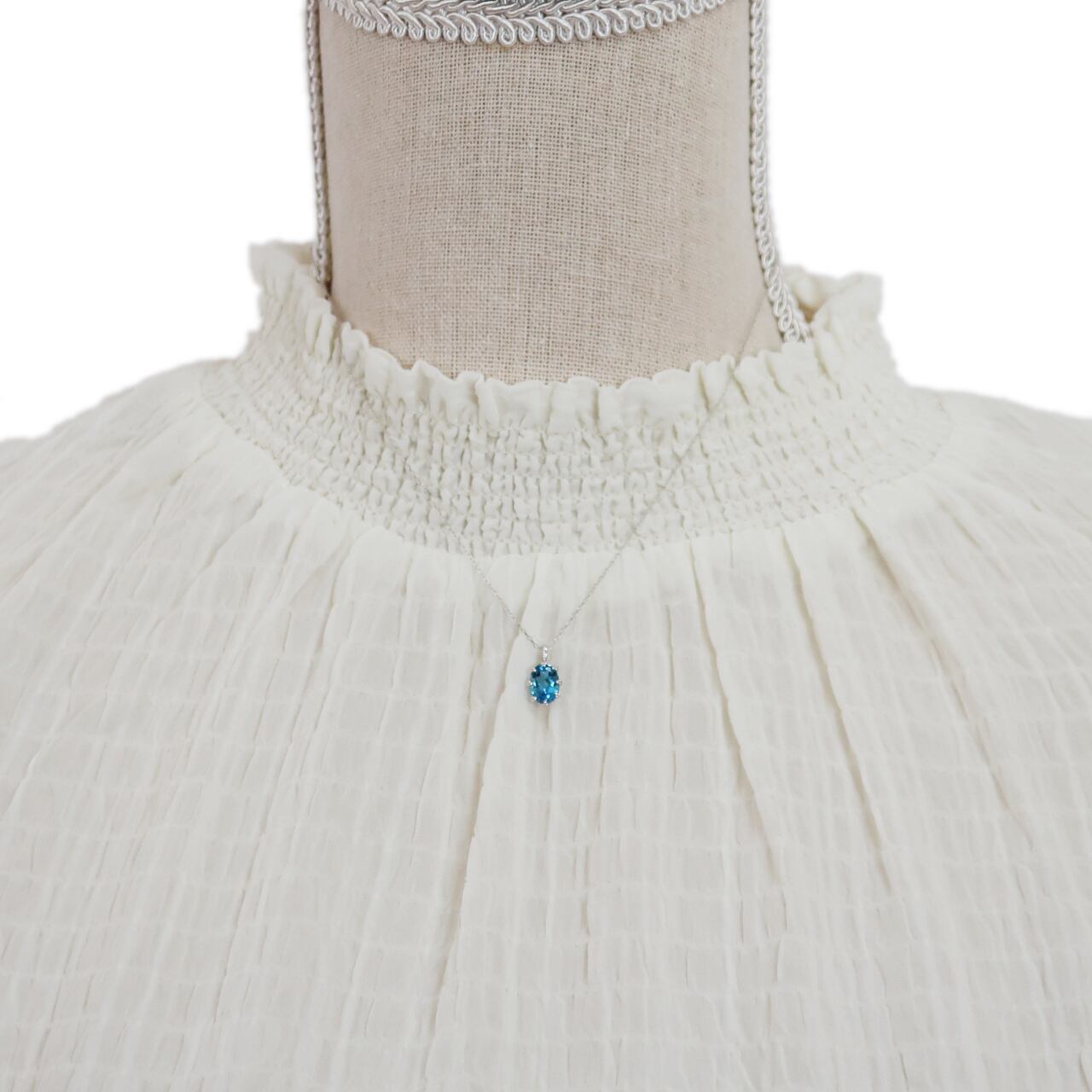 アンティーク風のかわいいデザインに、透明感のあるきれいなブルートパーズを留めたペンダントです。